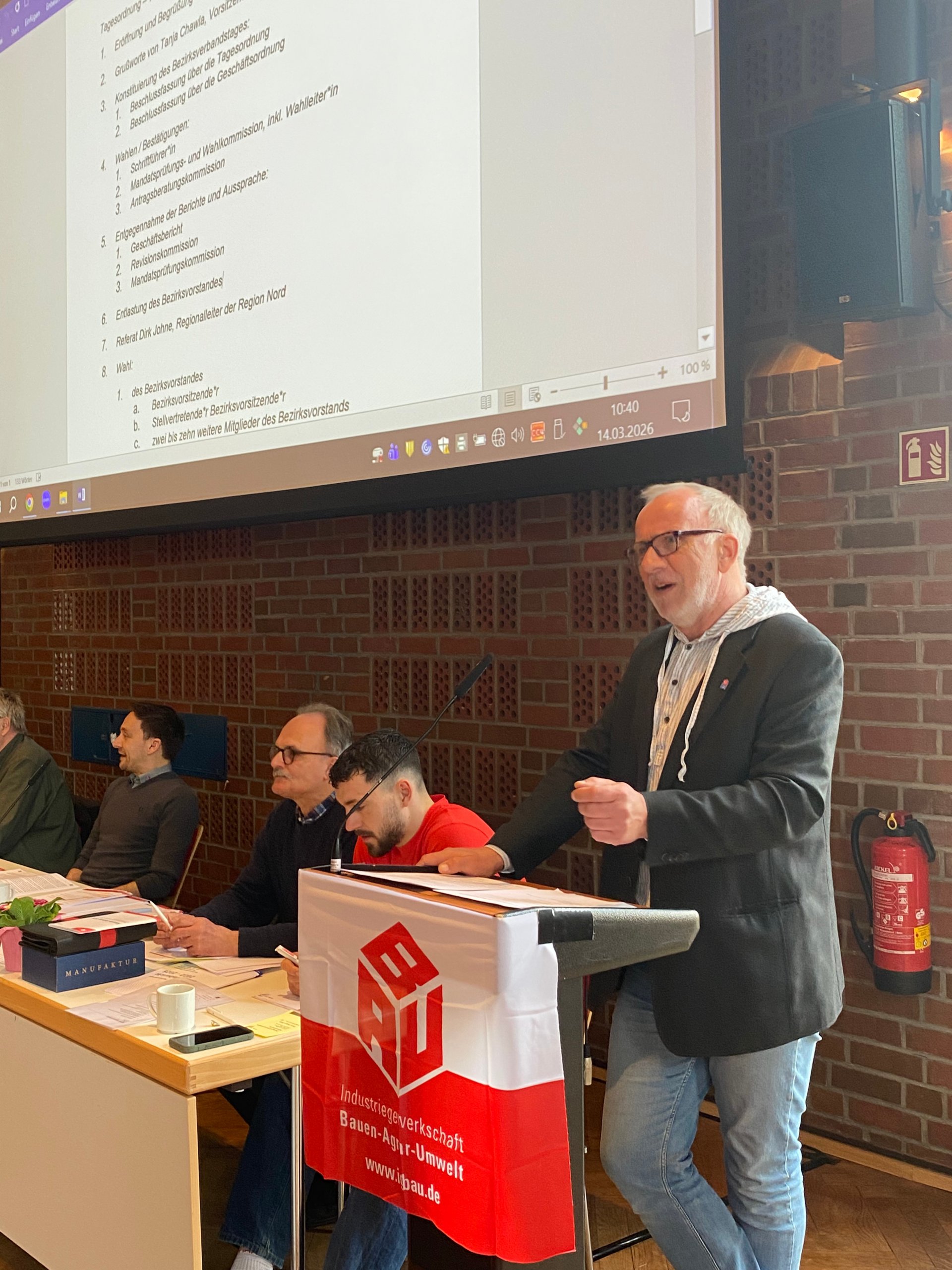 Ähnlich äußerten sich anschließend auch BAU-Regionalleiter Dirk Johne und der stellvertretende Bezirksvorsitzende Alexander Kahl. Während Kahl den Geschäftsbericht des Vorstands vorstellte und eine künftig noch stärkere Betonung der Betriebsgruppen ankündigte, freute sich Johne zuletzt über die Tarifabschlüsse der von der IG BAU betreuten Branchen: "Tarifpolitik ist ganz konkrete soziale Gestaltung - und die IG BAU hat abgeliefert". Der Abschluss im Bauhauptgewerbe 2024 sei der höchste aller Einzelgewerkschaften gewesen und habe ein starkes Signal gesetzt: "Tarifbindung lohnt sich, gemeinsam sind wir durchsetzungsfähig!".