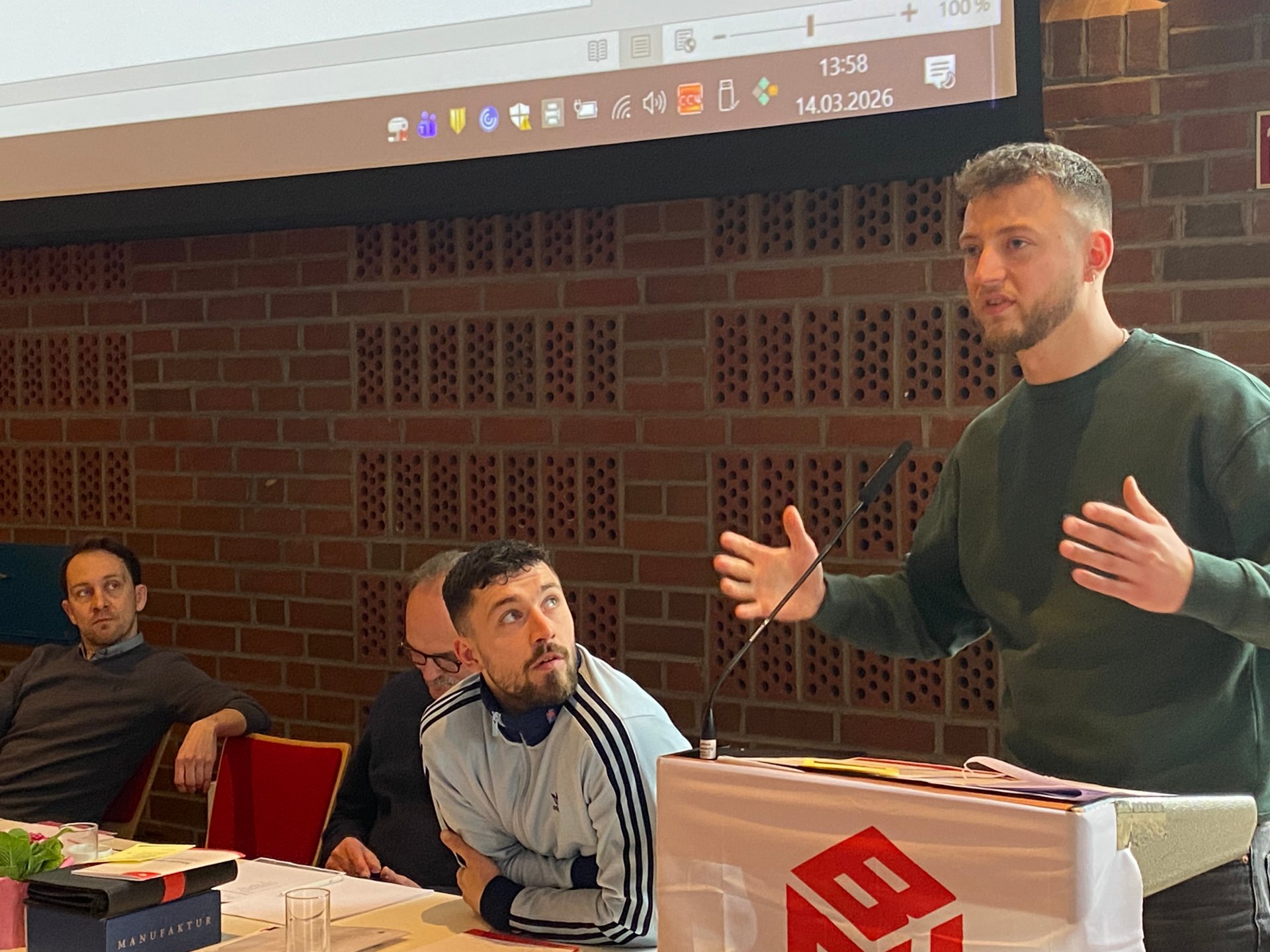 Die Junge BAU war es dann auch, die den Schlusspunkt der Veranstaltung setzte: In mehreren Anträgen - unter anderem einem Initiativantrag, wandte sich der IG BAU-Nachwuchs gegen die Wehrpflicht und gegen die Militarisierung der Gesellschaft. Zwar leiteten die Delegierten nur das Thema Wehrpflicht an den Gewerkschaftstag weiter, der Antrag gegen die Ausweitung Deutschlands (und für Soziale Sicherheit) wurde aber immerhin als Stellungnahme des Bezirksverbandstags beschlossen.