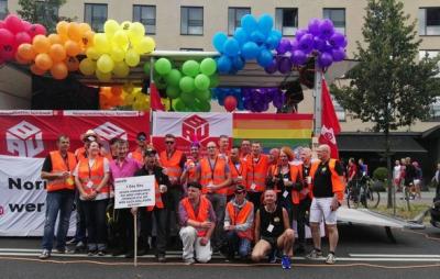 "Wir haben riesiges Glück, dass wir in einem Land leben, in dem diese Demonstration von den Kolleginnen und Kollegen der Polizeit geschützt und nicht aufgelöst wird", sagte Carsten Wirth, Sprecher der Arbeitsgruppe IGay BAU und Bezirksvorstandsmitglied. "Leider ist es immer noch nicht selbstverständlich, dass jeder auch am Arbeitsplatz ohne Angst über seine sexuelle Orientierung sprechen kann. Wir wollen das ändern!", so der Gewerkschafter weiter. "Die Gewerkschaft IG BAU ist auf einem guten Weg mit diesem Thema umzugehen. Helfen wir der Gesellschaft das Gleiche zu tun."