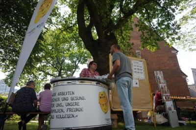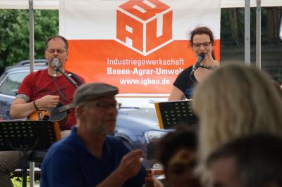 Doch neben ein, zwei Ausflügen ins laufende Tarifgeschehen ging es vor dem Bundeshaus eher zwanglos zu. Während sich Branchensekretäre und Bezirksvorstände um das leibliche Wohl der Mitglieder kümmerten, sorgten die "Likedeeler" für musikalische Unterhaltung. Und wer wollte, konnte sich bei der BG BAU, der IKK classic oder auch der SOKA Bau informieren und das ein- oder andere Präsent abstauben.