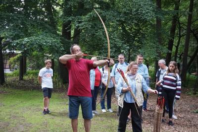 Wie viele Leitwölfe hat ein Rudel? Wie kommt der Waschbär zu seinem Namen? Und welche Spuren hinterlassen die verschiedenen Tiere? Wer diese und ähnliche Fragen beantworten und dann vielleicht noch gut mit Pfeil und Bogen umgehen konnte, hatte bei der großen Tierpark Rallye gute Chancen, die den unterhaltsamen Abschluss des diesjährigen "IG BAU Familientages" bildete. In zwei großen Gruppen wurden die TeilnehmerInnen von Biologin Claudia Jülich und Umweltwissenschaftlerin Svenja Oßenbrügge durch den Tierpark geführt und in verschiedenen Disziplinen auf die Probe gestellt.