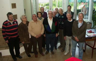 Wolfgang Gauert, eingerahmt von Werner Stapelfeldt (links) und Klaus Knickmeier. Ganze rechts die Frau des Jubilars.