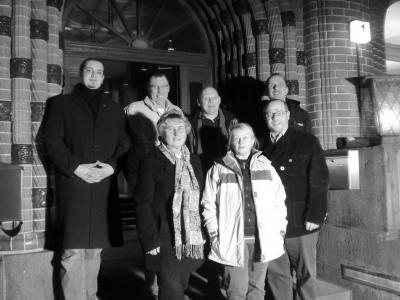 Der Bezirksvorstand 2011 vor dem Eingang des Bundeshauses in der Jungestraße, vorne links Elke Kloppenburg (Foto: Harning).