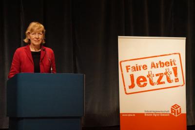 Nicht ohne Stolz erinnerte Maurer dann an die Tarifergebnisse des vergangenen Jahres, allen voran der starke Abschluss im Bauhauptgewerbe. "Nach Jahren, wenn nicht Jahrzehnten des Preiskampfes und der Dumpinglohnkonkurrenz müsste man denken: Jetzt ist das aber mal vorbei", so Maurer. Das allerdings sei trotz brummender Konjunktur und wachsenden gewerkschaftlichen Selbstbewusstseins nur teilweise der Fall. "Der aktuelle Fachkräftemangel", kritisiert der Baugewerkschafter, "wird nicht in erster Linie durch Ausbildung und steigende Löhne bekämpft, sondern durch das Fortführen und den Ausbau der Dumpinglohnindustrie."